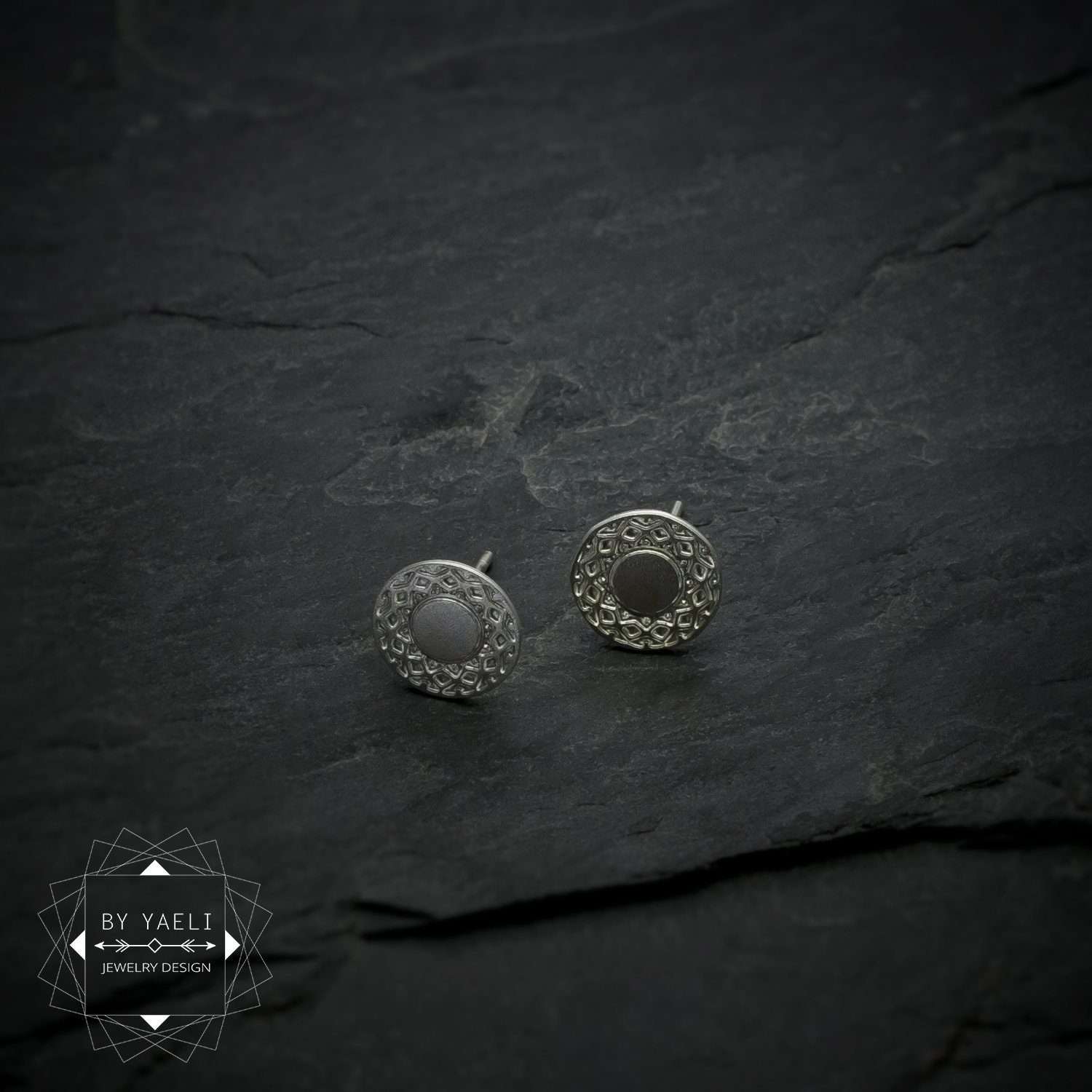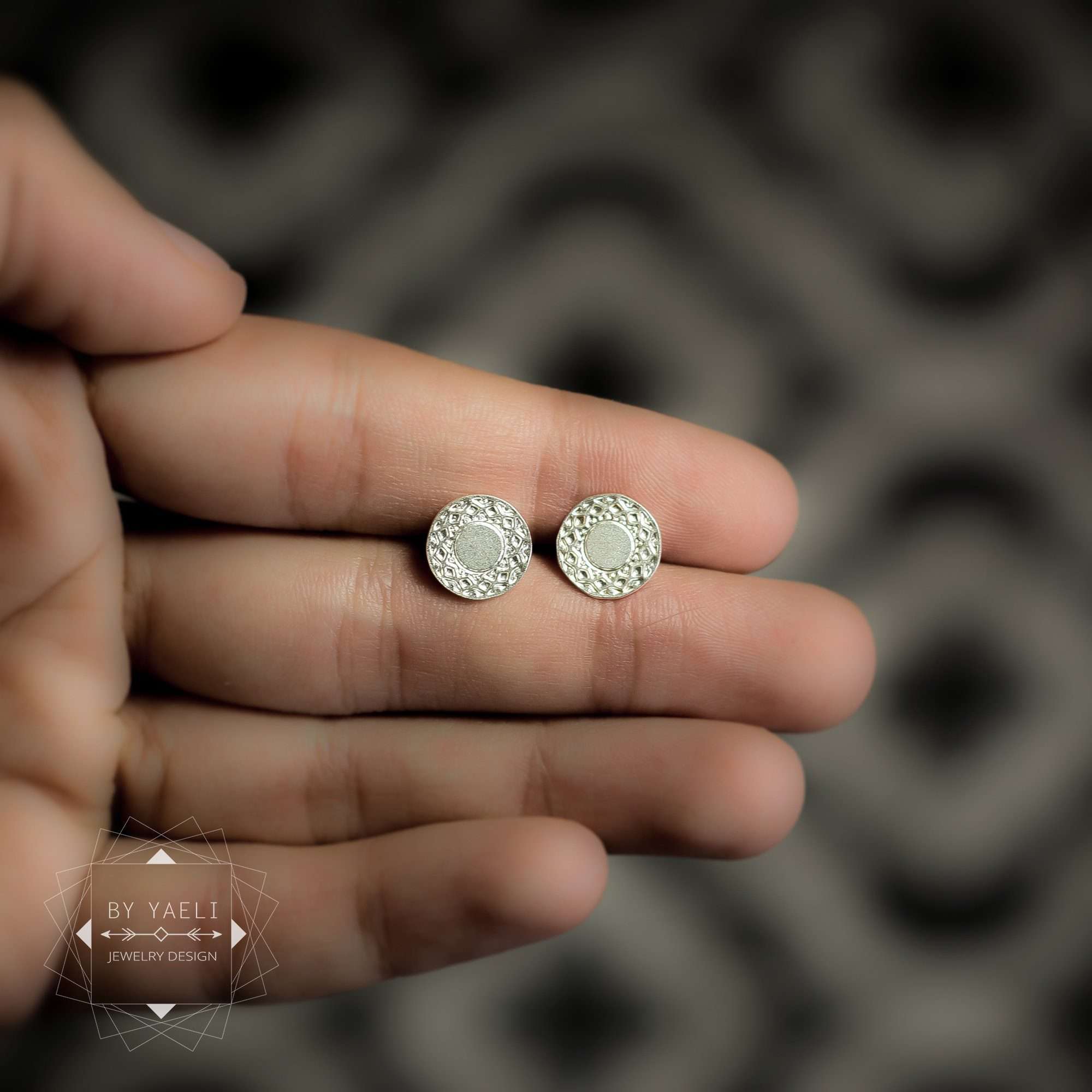 This minimalist circle stud with flower pattern, is perfect as everyday earrings.