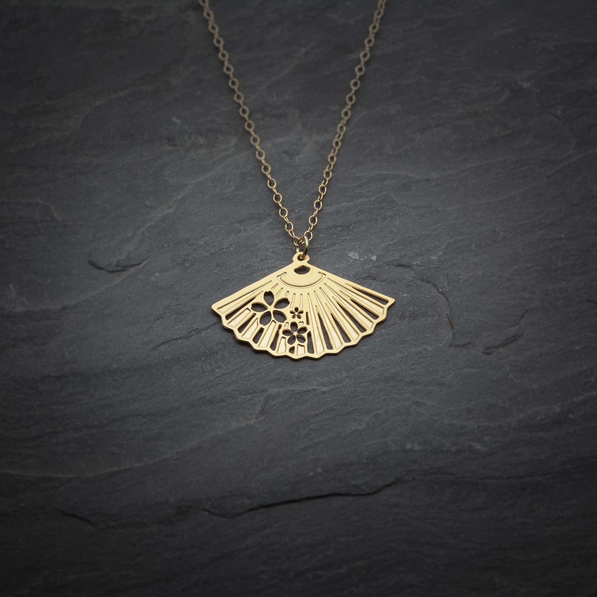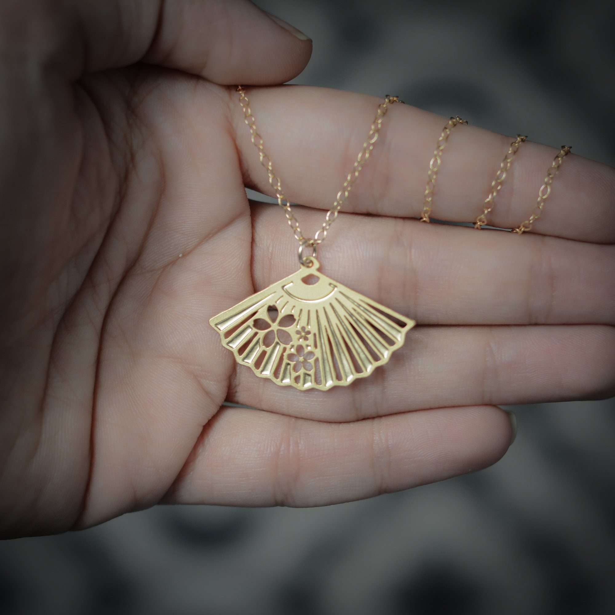 Fan necklace – dainty Japanese fan pendant inspired from the Japanese jewelry style.