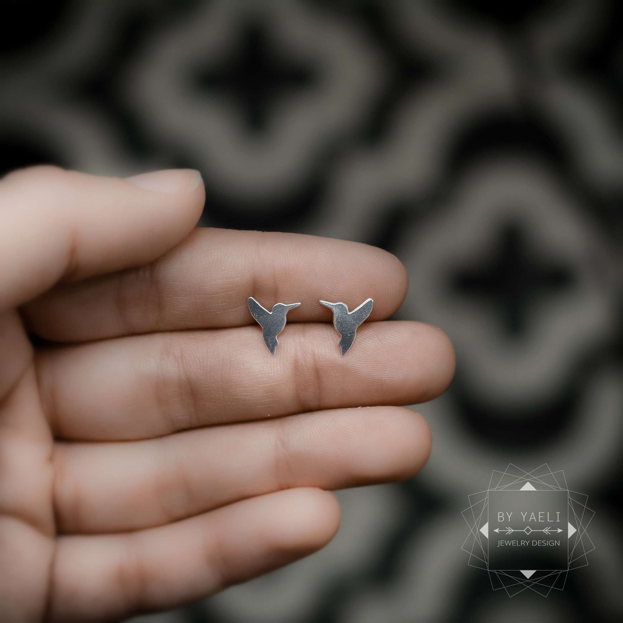 Hummingbird earrings dainty minimalist tiny silver Hummingbird stud earrings, bird earrings