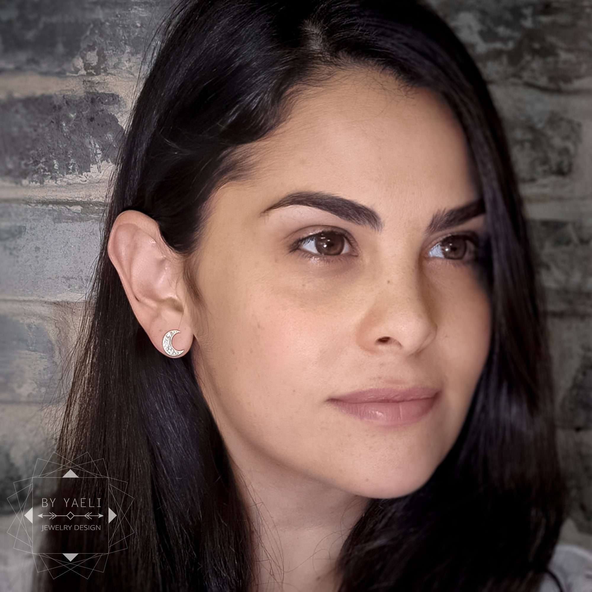 Moon earrings – Delicate crescent moon with unique pattern simple and fun.